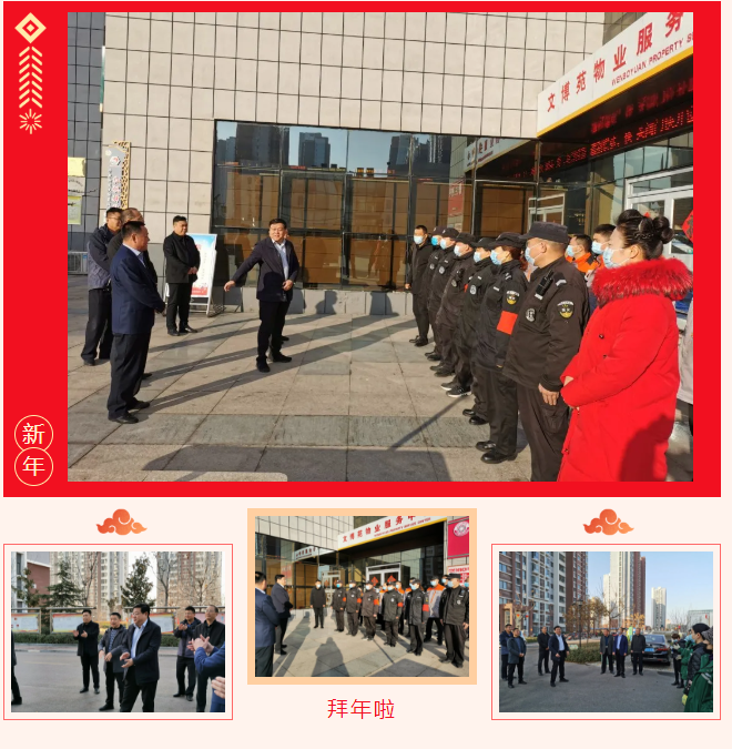 在文博苑、泉興家園物業(yè)值班崗點(diǎn),為值守人員送去新春祝福。張文對(duì)物業(yè)公司疫情防控工作給予高度肯定,他指出在去年疫情防控形勢(shì)嚴(yán)峻的情況下,物業(yè)公司干部職工齊心協(xié)力克服困難做到了守土有責(zé)、守土盡責(zé);目前,不確定性因素依然很多,物業(yè)人員要本著對(duì)自己負(fù)責(zé)、對(duì)業(yè)主負(fù)責(zé)的態(tài)度增強(qiáng)防范意識(shí),把疫情防控作為當(dāng)前實(shí)時(shí)重要政治任務(wù),注意做好個(gè)人防護(hù)的同時(shí),采取更嚴(yán)格、更規(guī)范、更深入、更有效的防控自控措施,讓業(yè)主和居民健康、平安、安心度春節(jié)。